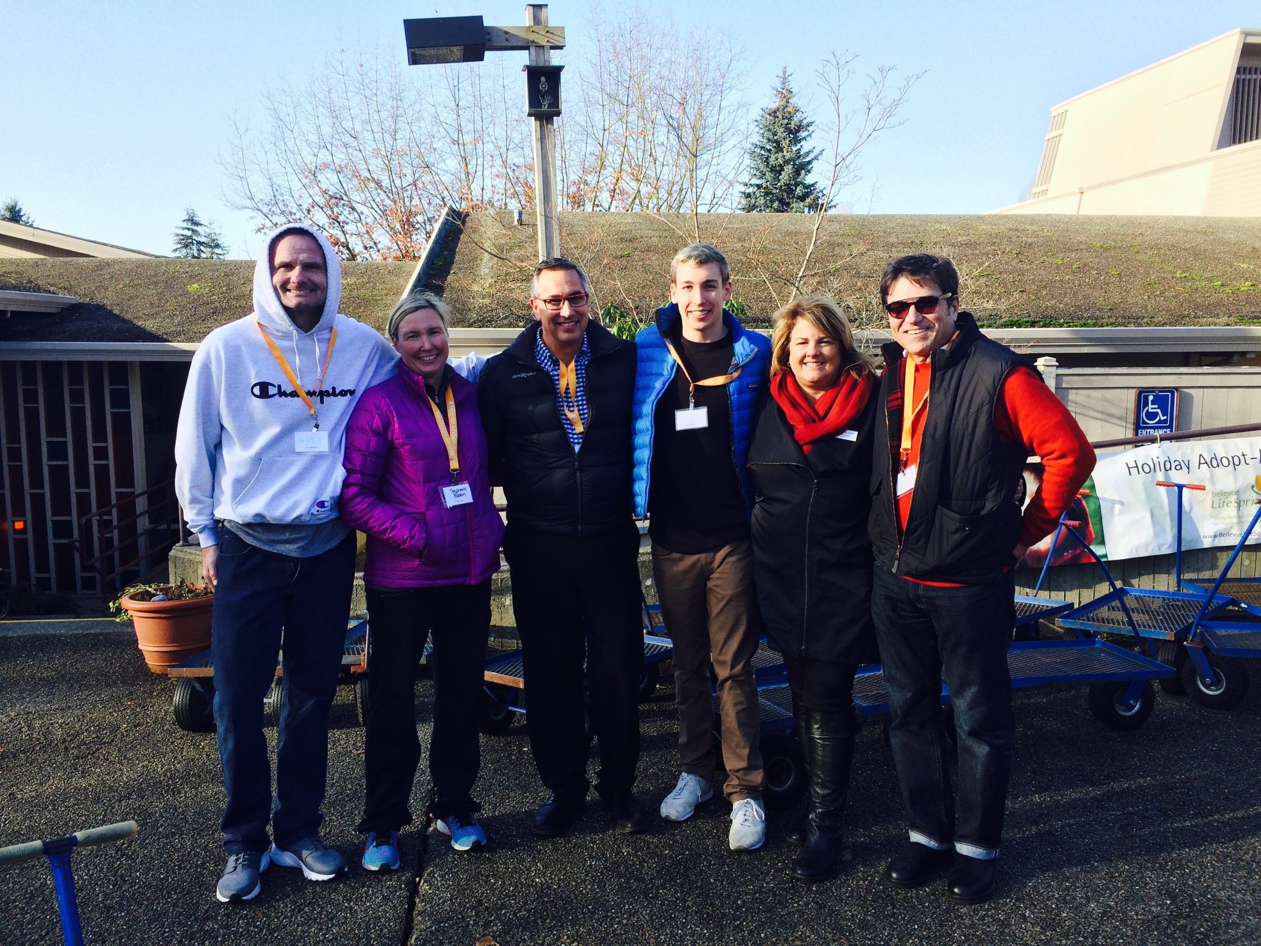 The energy in the lobby of First United Methodist Church is palpable – even at 7 a.m. on the Tuesday before Christmas. Volunteers armed with carts wait expectantly for sponsors to arrive so they can help unload their cars and deliver gifts to one of 283 folding chairs marked with a name and a number. Each chair represents a Bellevue family living in poverty this holiday season. Fortunately, each family has been matched with a community sponsor through Bellevue LifeSpring’s Holiday Adopt-A-Family program.